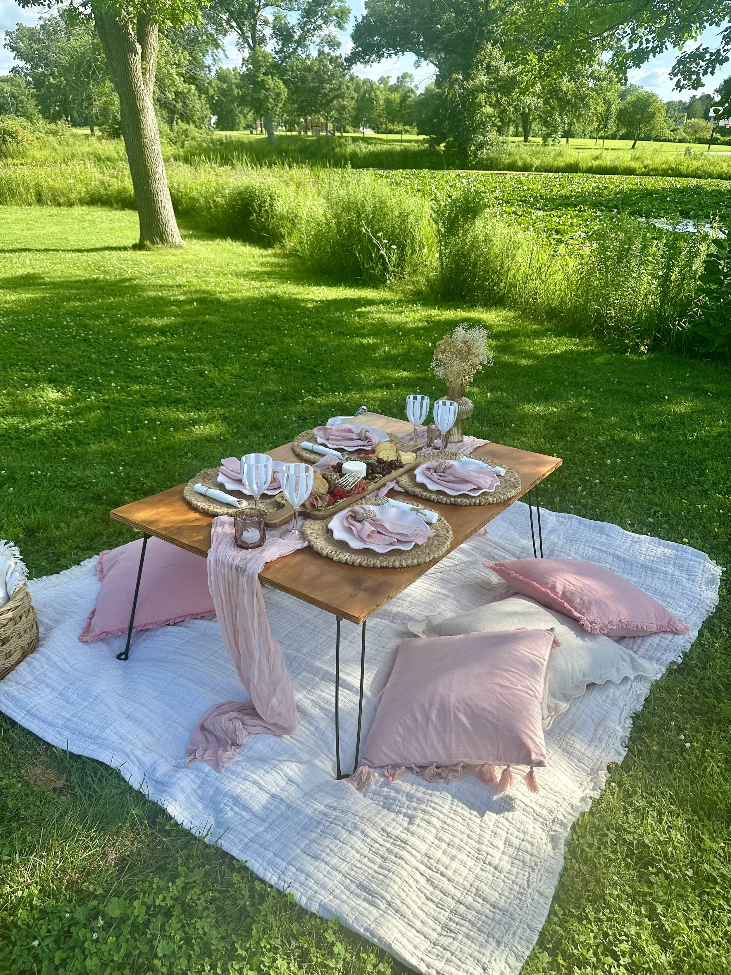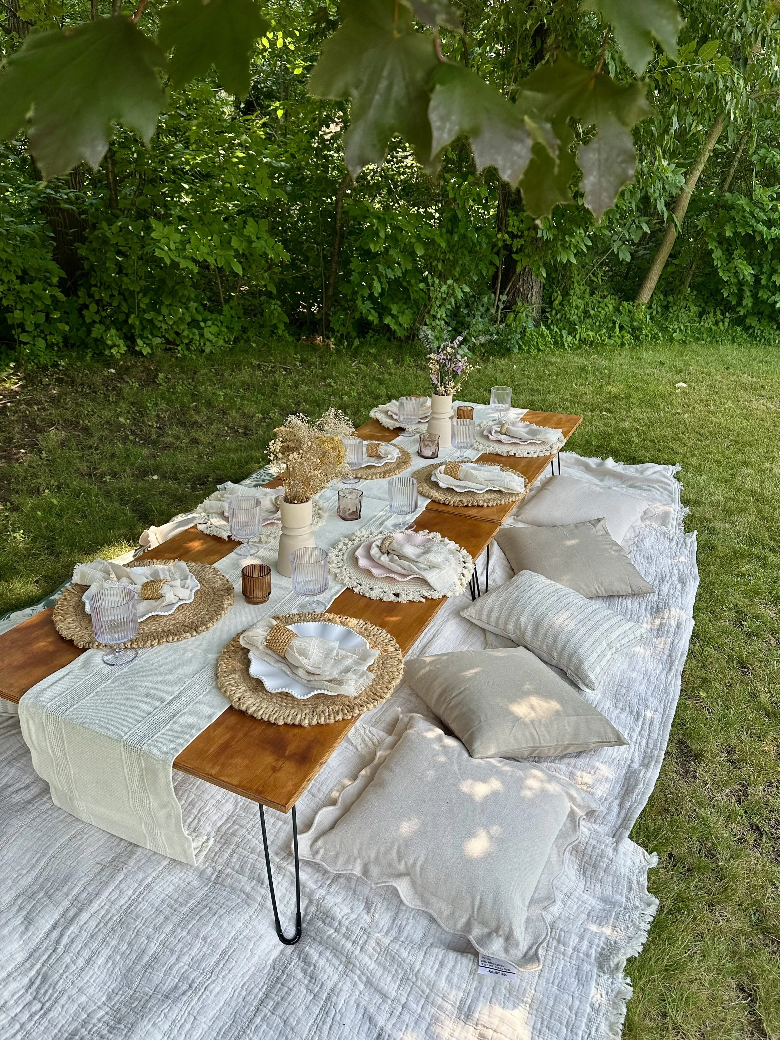 We use a mix of reusable and high-quality disposable pieces depending on the theme and group size. Everything is styled to match the picnic you select.